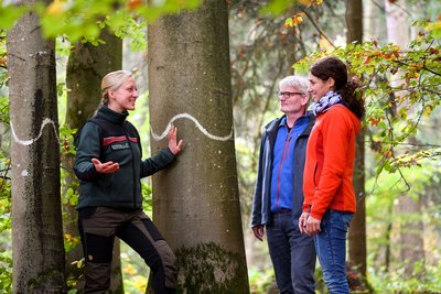 Many native animal species typical of the forest are adapted to forests rich in deciduous trees and interspersed with mainly small areas of old trees and decaying timber. Trees with rotting and woodpecker holes – so-called cavity trees – are particularly valuable, and indispensable in close-to-nature forest management. Cavity trees like this not only provide nesting places for woodpeckers, but also for owls, tits, hornets, bats and many other species groups.