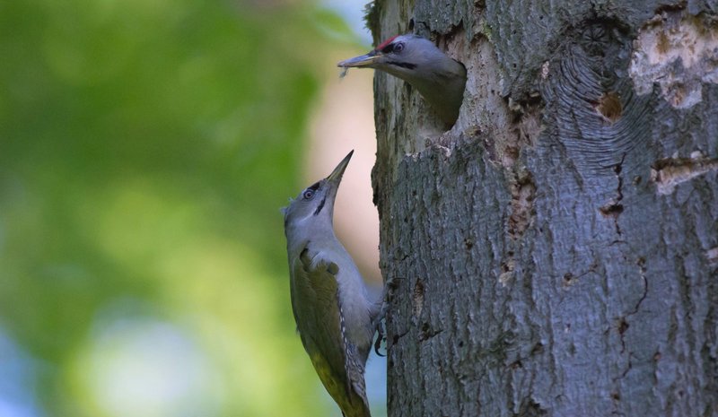 Grey-headed woodpecker: This species is widespread throughout Bavaria, but rare everywhere. With regard to the mix of trees in the forest, it is not very choosy, as long as there are lots of recurring small islands of large deciduous trees with rotten spots in which it can establish its nesting cavities. Also specialised on insects, it requires large quantities of deadwood in direct sunlight in closed forest areas, or sparse forests with lots of ants. In the large deciduous forest areas of Franconia with high levels of old wood, its populations seem stable. It also settles with a high population density in alder groves or on moorland rich in deciduous trees. On semi-open landscapes, its populations are however declining significantly. Old meadow orchards, pasture land, silvopasture, or deciduous forests rich in old trees and interspersed with barren grassland have become very rare – and with them many foraging habitats with short grass and lots of ants. This development is also reflected in the declining populations of the wryneck.