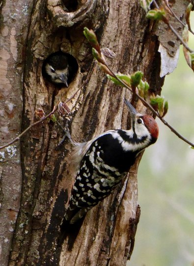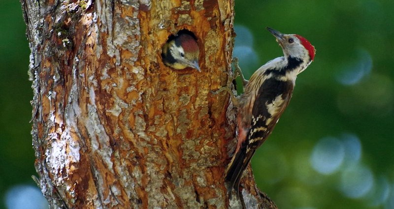 Middle spotted woodpecker: Of all the woodpeckers, the development in the population of the middle spotted woodpecker is particularly encouraging. This is one of 25 species for which Germany bears the greatest responsibility worldwide. As a “poking” woodpecker on old trees with coarse bark, it feeds all year round almost exclusively on insects. As it constructs a new nesting cavity each year, it also needs lots of trees with rotten spots throughout its large territory consisting of several hectares. Its population increase is clear evidence not only that the proportion of the area covered by native deciduous trees and the average age of those trees has increased, but also that the quality of the habitat has improved.