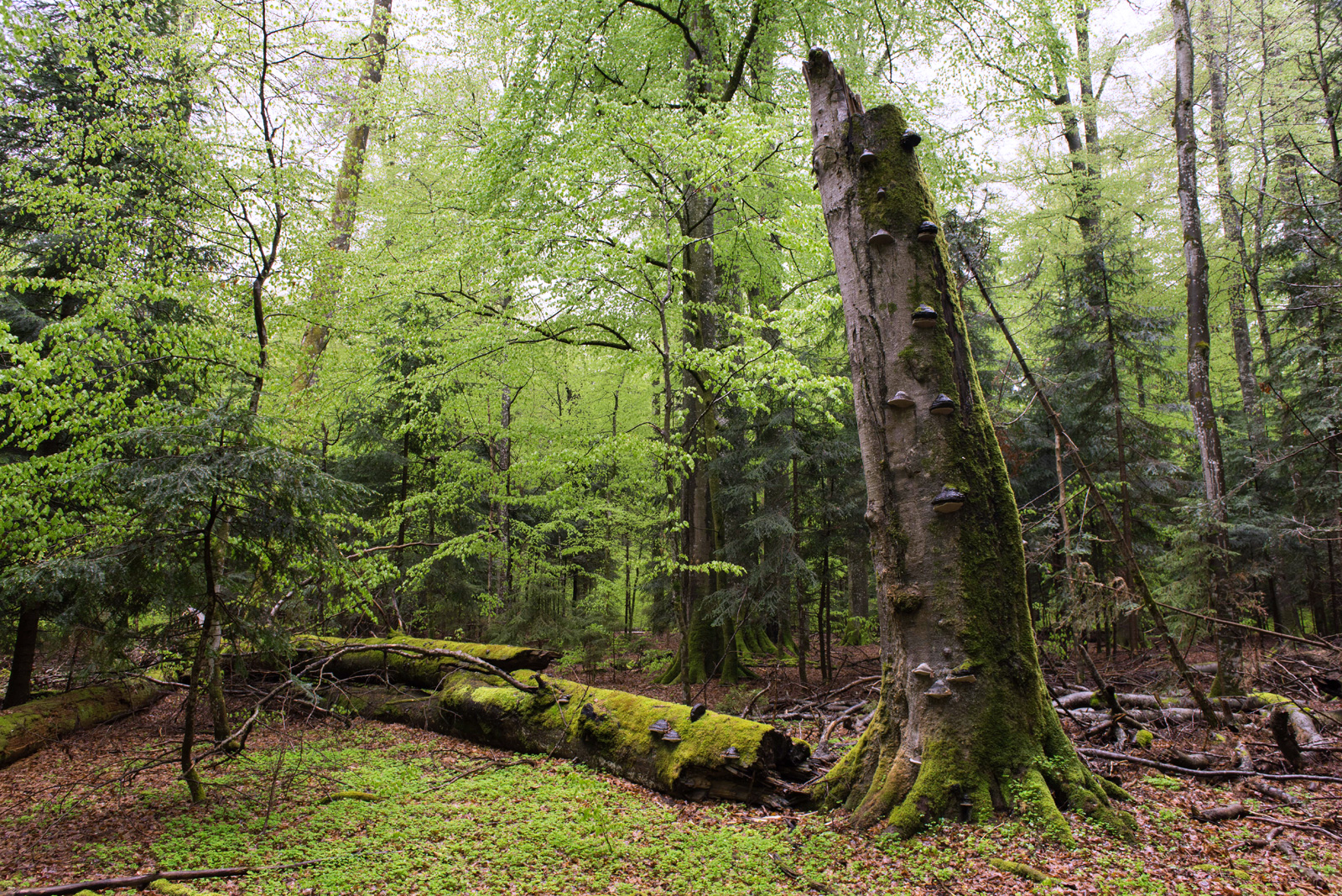 Most of these structures can also be provided by close-to-nature silviculture. Small-scale felling measures (e.g. group selection cuts) and regeneration measures (e.g. planting of small groups of trees under the canopy) can create the desired mosaic of particular forest development phases. The conservation of habitat trees and the leaving of thicker pieces of deadwood both standing and lying is a way of imitating the ageing and decaying phases of the natural forest. In addition, gaps caused by individual old trees falling give rise to an uneven crown structure with small gaps in the stand.