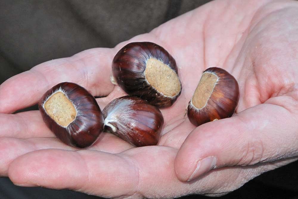 The chestnut blight must not be carried into healthy stands. It is an aggressive bark disease, which is endangering the development of sweet chestnut stands and which can hardly be eliminated. It is especially important to import grafted trees from Cryphonectria free regions only (plant passport), because grafts are very susceptible to the disease. It can even break out one to two years after grafting.