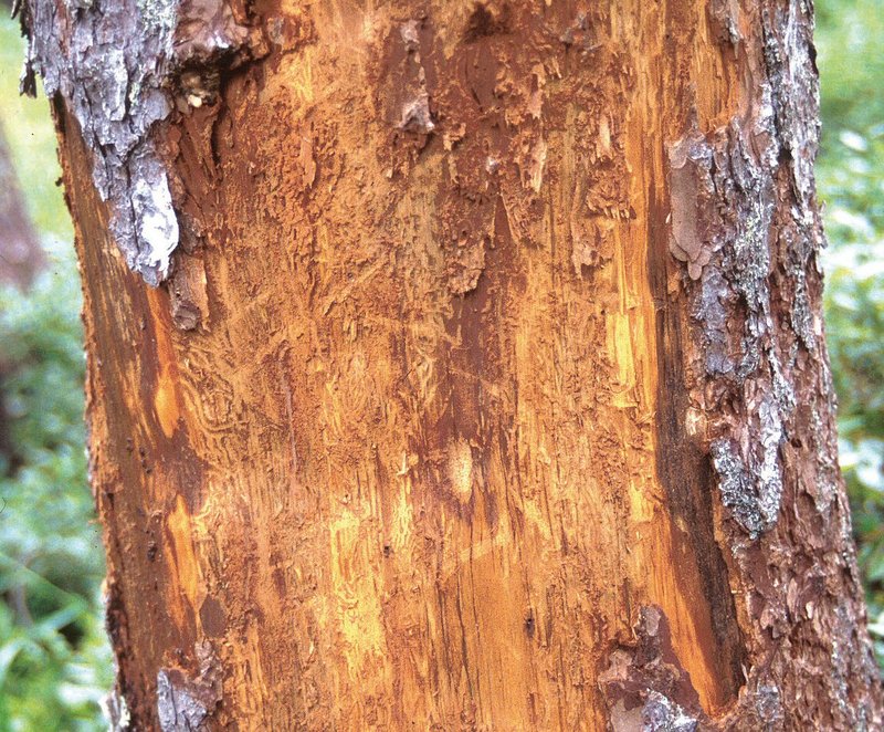 If they find a tree that offers plenty of food, the bird can strip the bark off of virtually the entire tree in a short space of time (fig. 2). This exposes the beetle broods to adverse weather and they die from dehydration or unfavourable temperatures, for example. Fungi also infest breeding galleries. Bark beetle broods in sections of bark that have fallen to the ground are in turn prey for other birds or small mammals.