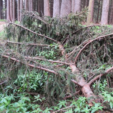 If forest owners have found freshly infested beetle wood, it must be processed and removed from the forest promptly. If removal to a timber processing plant is not possible within one to two weeks, the infested wood should be stored at least 500 m away from the nearest coniferous stand or, if necessary, treated with plant protection products before the beetles have the chance to fly.