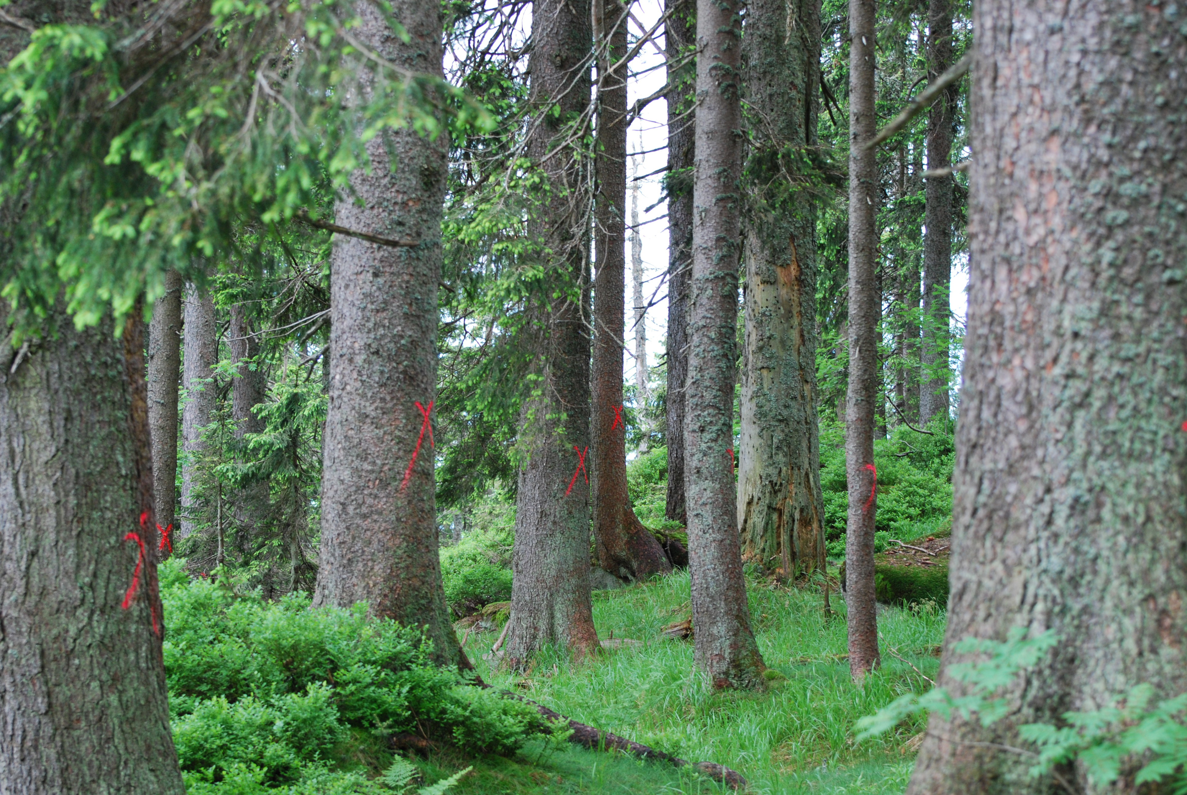 There are usually still beetles in these trees as well, so it is imperative to fell and remove them, too. Increased resin flow at the base of the crown is a warning sign, but does not reliably indicate beetle infestation. If the diagnosis is unclear, it is essential to take a felling sample.