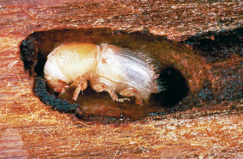 The two species also have very similar breeding galleries. However, those familiar with the exit holes of the spruce bark beetle will notice that the holes created by an infestation of the northern bark beetle are usually much smaller (1 to 1.2 mm in diameter).