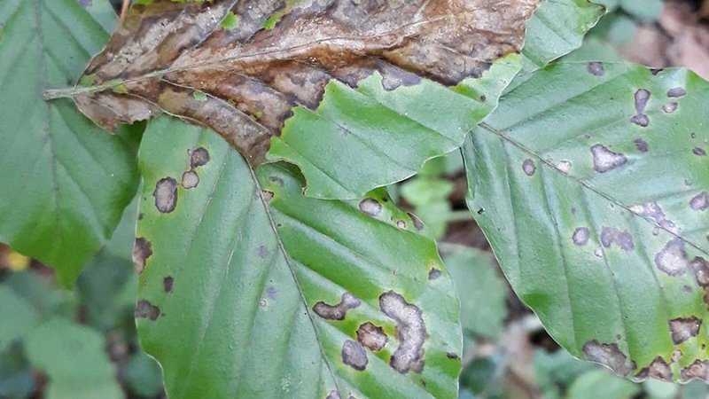 Infection mainly affects young beech trees in the understorey and low-hanging beech branches on shady, humid sites. Trees on sunny and sparse, light sites seem to be infected less frequently. In the course of infection trials it was shown that, because they have thicker cell walls, sun-exposed leaves of the common beech are more resistant to fungal infection than the softer leaves hanging in the shade. However, this protective effect is lost again by sun-exposed leaves it they are damaged mechanically or by insect herbivores such as the beech leaf-miner beetle (Orchestes fagi).