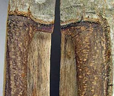 Fig. 8: The callousing of the wounds in the bark occurs principally from the lateral edges.