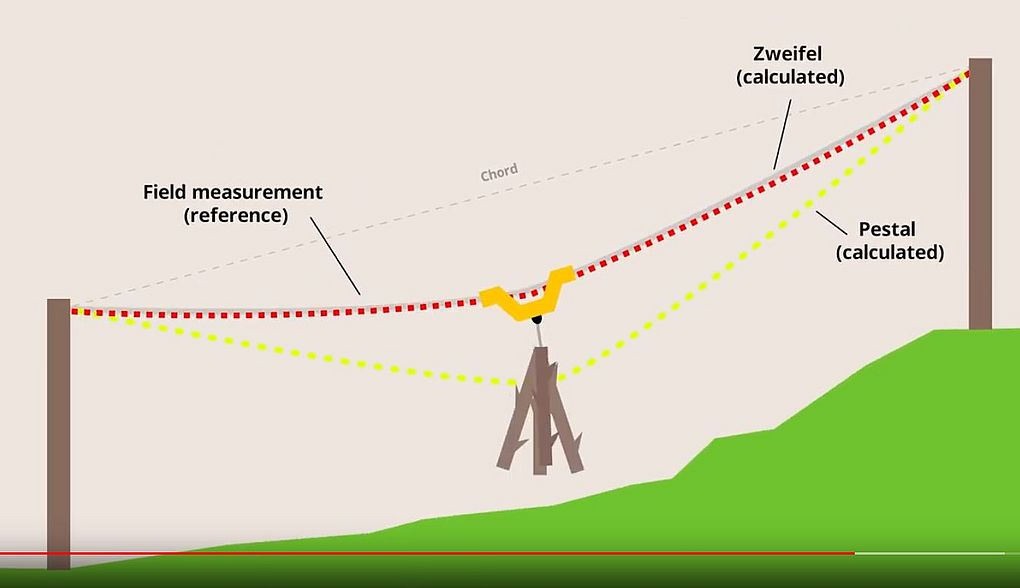 In the 1960s, two professors independently dealt with such ropeway calculatons. Ernst Pestal in Vienna published a book on ropeways and cable yarders at that time, which is considered a standard work in the forestry industry. The cable mechanical formulas described in it is still widely used today, although it overestimates the skyline sags for cranes. Its advantage is that it can be easily calculated by hand and graphically.