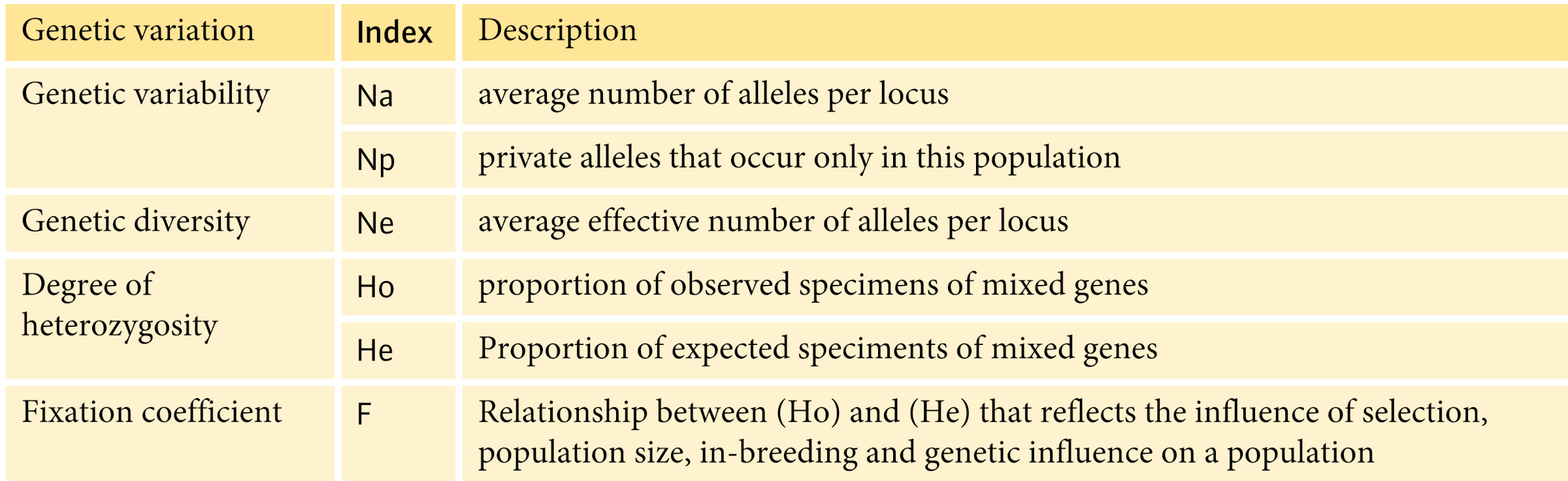 To describe genetic variation, allele frequencies were calculated based on the multilocus genotypes determined for individual trees. The following genetic indices describing genetic variation within populations were calculated using the GenAIEx Version 6.5 programme (Peakall & Smouse 2012) (Figure 4).