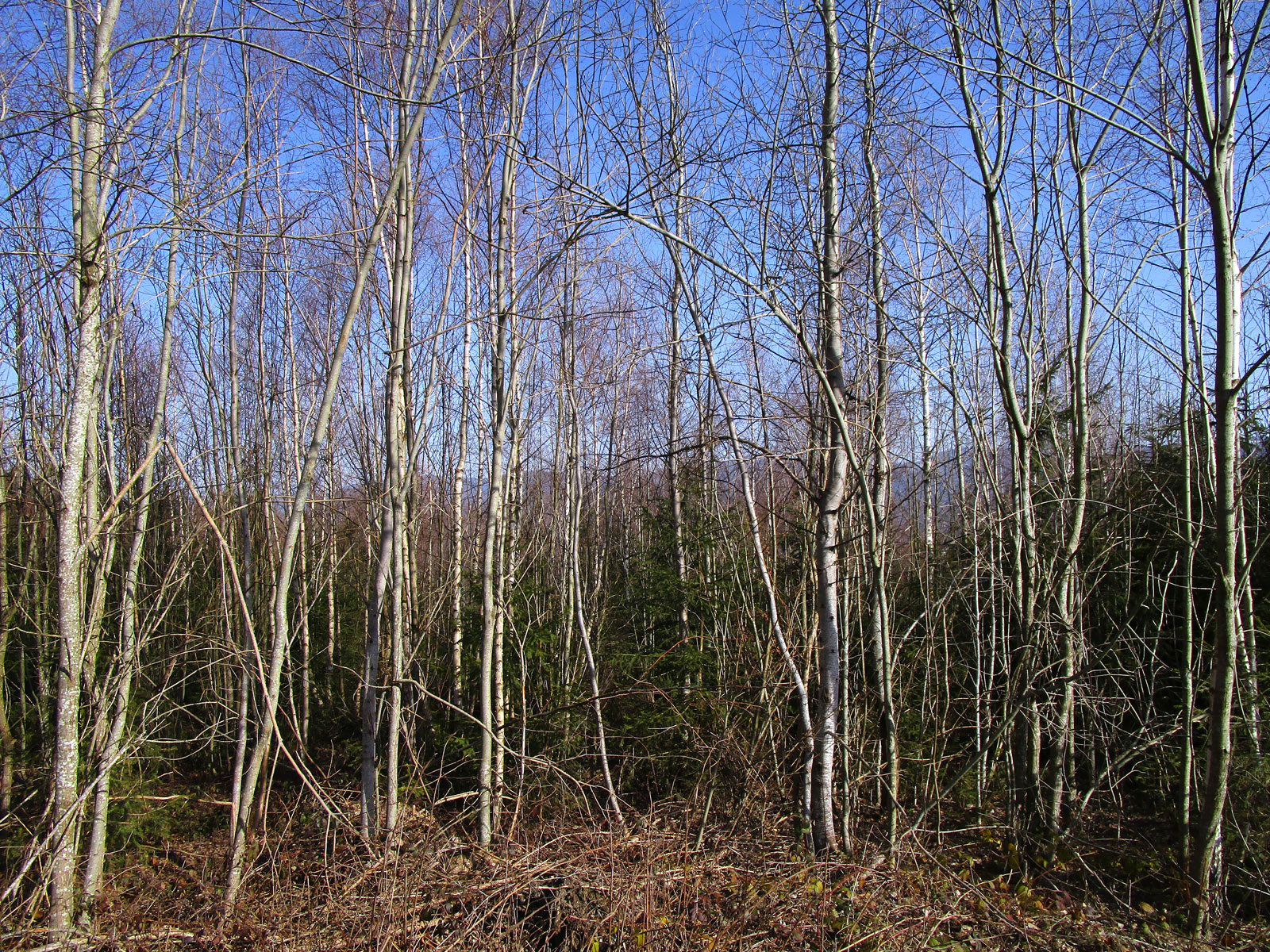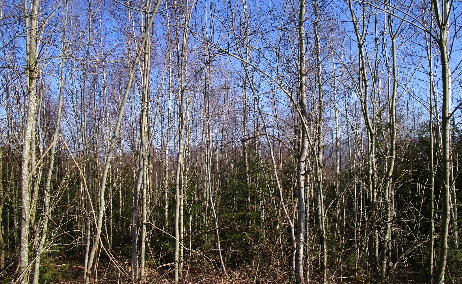 One method that has been known for a long time but is seldom used, is to use soft deciduous woods to provide shelter for shade-loving tree species. This is suitable for clear areas. In this case, the soft deciduous wood that regenerates naturally is left, but the number of trunks is reduced through thinning measures to around 1.000 trees/ha. Under these pioneer trees, shade-loving tree species such as beech and fir can be introduced by planting during the given time period.