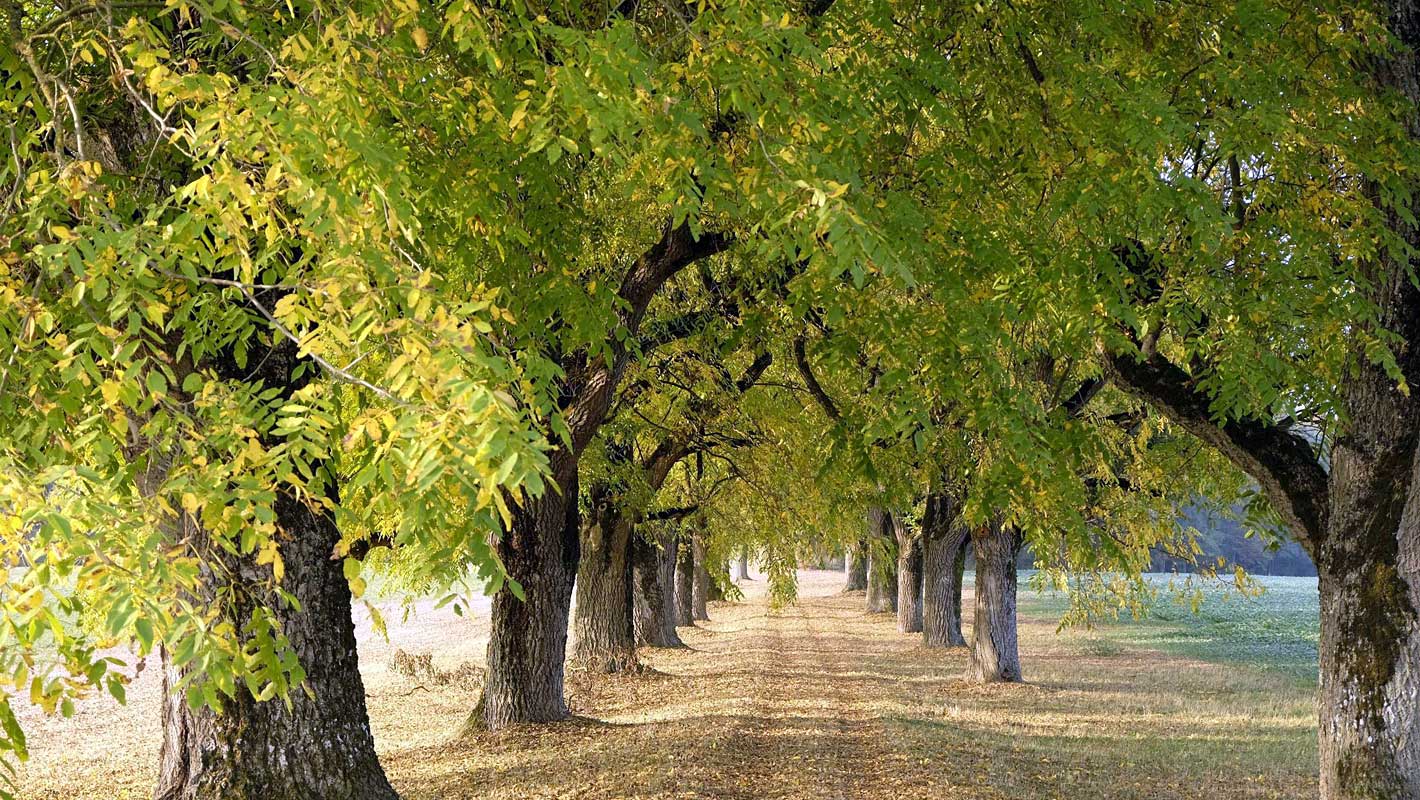 Both black walnut and hybrid walnut require deep, well-aerated soils rich in nutrients and with pH values between 5 and 8. Free excess lime is not a limiting factor, but black walnut trees are less tolerant of free excess lime than the walnut Juglans regia. The black walnut is the most demanding in terms of its water supply requirements. The hybrid walnut can be cultivated in all areas down to the “moderately dry” category, albeit with a marked decrease in growth performance. Compacted and extreme alternately wet and alternately dry sites are just as unsuitable as sites with clay or gravel layers in the subsoil that are impenetrable for the walnut roots, as well as sites with very high groundwater levels. The average annual mean temperature should be at least 8 °C.