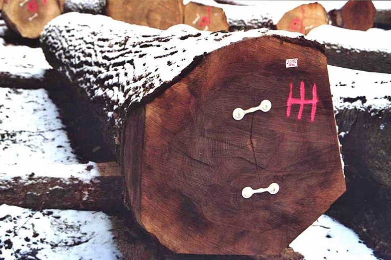 Black walnut trunks have a unique selling point among deciduous timbers in that even small diameter timber of categories 2a/2b (20-24 cm/25-29 cm) pays well. However, we should not allow this circumstance to tempt us into producing as much timber as possible from thinning activities while neglecting to promote the final crop trees properly. High quality black walnut timber (Fig. 13) fetches high prices. The sales revenues in the years 2005 to 2010 for the districts of Karlsruhe, Rastatt and Breisgau-Hochschwarzwald are shown in Tab. 1. Top prices can be over EUR 2000/m³ (solid) (Fig. 14).