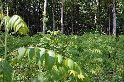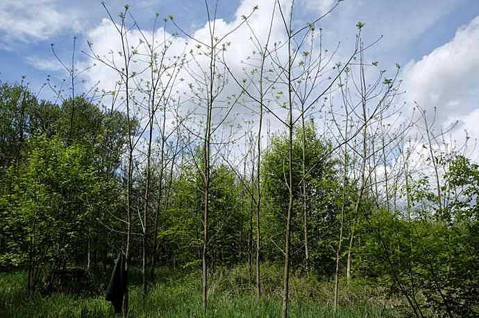 The black walnut regenerates well naturally. It is advisable to actively promote good quality and vigorous plants, and to include them in the subsequent stand. The hybrid walnut also regenerates naturally, although the hybrid walnut trees bear hardly any fruit. As the F2 generation, the progeny are genetically split, so that as a rule, only a very small proportion have the same favourable growth characteristics as the parent trees. Theoretically, individual offspring can also show better growth performance than the parent trees.