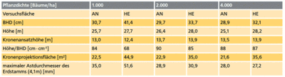 The study shows the influence of silviculture on the potential use of Douglas fir timber. High planting densities produce a high quality of sawn timber. This is also likely to be true for spruce and other conifers. It is essential to know this in order to find the optimum balance between stand stability, usable timber quantities and ecological value. The study emphasises the technological qualities of the timber and provides valuable knowledge in the discussion on appropriate plant numbers and the optimum spacing of the trees. From the point of view of the wood’s technological properties, the quality improves particularly where the planting density is increased from 1.000 to 2.000 trees per hectare.