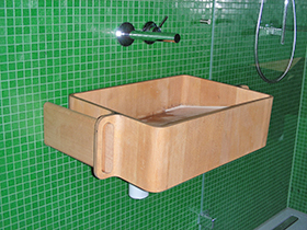 Fig. 4. Un lavabo en bois testé dans l’appartement « Vision Wood ». Photo: Doris Hölling (WSL)