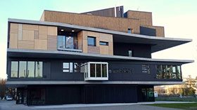 Fig. 5. NEST – Laboratoire d’essais pour les développements des techniques de construction, situé sur le campus des deux instituts de recherche Empa et Eawag à Dübendorf. De nouveaux matériaux y sont testés dans des conditions d’utilisation quotidienne. L’appartement «Vision Wood» est constitué en grande partie de bois de hêtre. Photo: Doris Hölling (WSL)