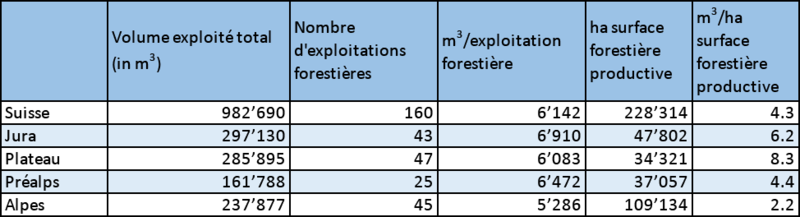 Les différentes conditions de croissance et de production du bois sont prises en compte grâce à une évaluation régionale selon les zones forestières Jura, Plateau, Préalpes et Alpes.