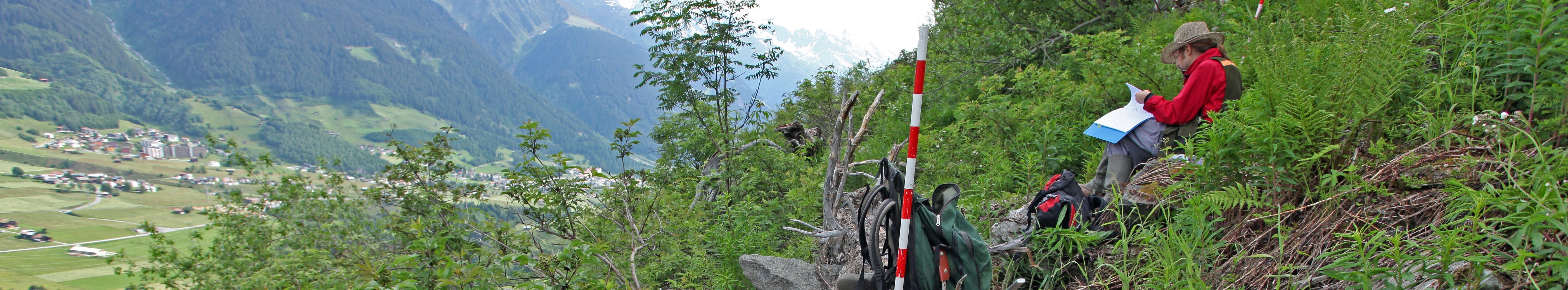 Fig. 3 - Chaque carré de plantation comprend sept semis. Photo: Oswald Odermatt (WSL)
