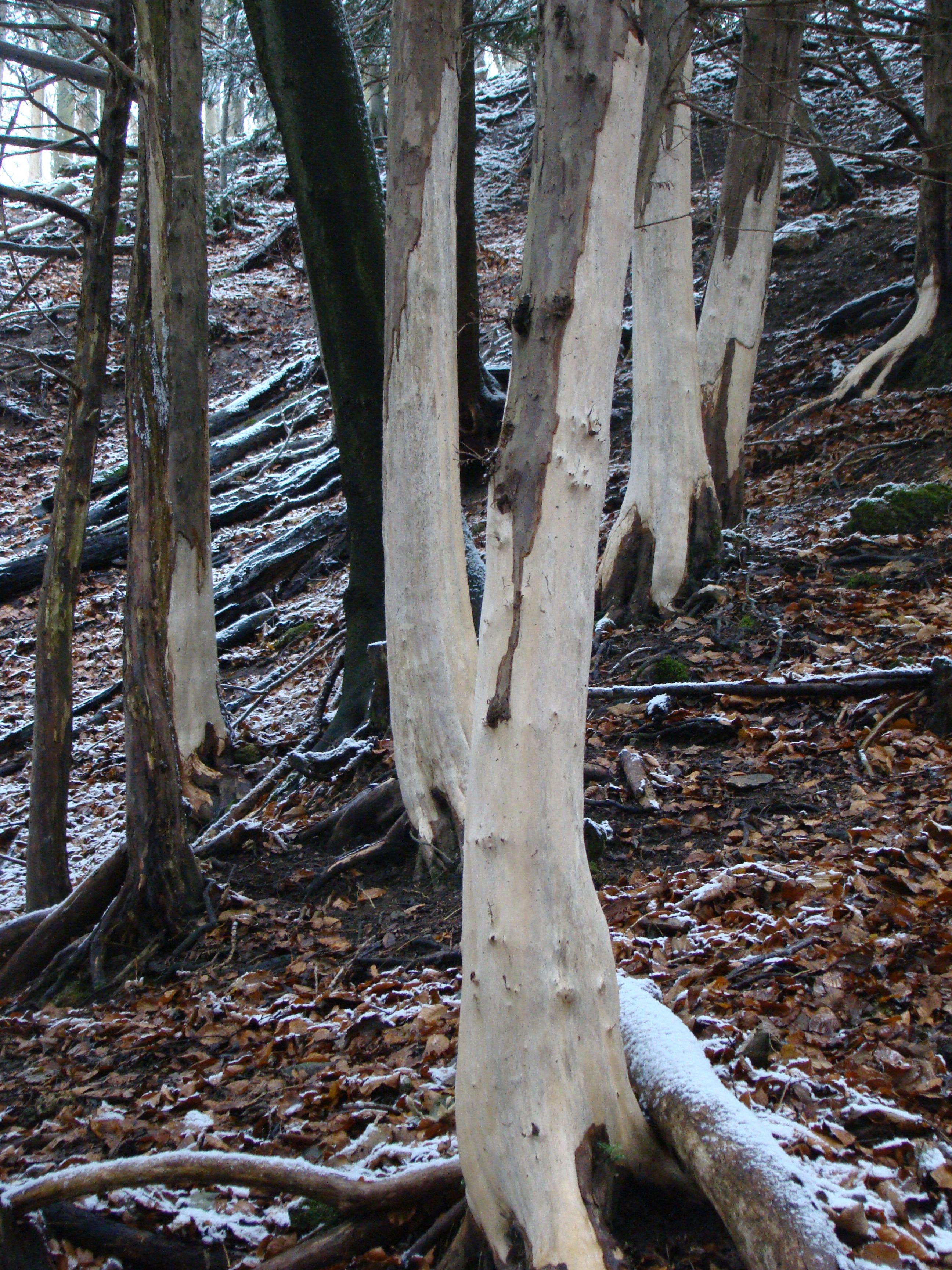 Les dégâts d’écorçage dans la région d’Albis soulignent que les arbres les plus faibles sont les principales victimes et subissent un dommage total. Les arbres à l’écorce rugueuse, aux nombreux bourgeons adventifs (avec de petites excroissances noires) et aux fortes cannelures, sont au contraire moins menacés.