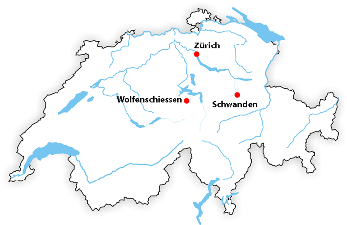 Les observations se sont déroulées sur trois sites à différentes altitudes et avec des densités de gibier différentes (fig. 2). Le cerf, le chevreuil et le chamois sont présents sur les sites Wandfluh (800–900 m d’altitude, commune de Wolfenschiessen NW) et Niderental (900–1250 m d’altitude, commune de Schwanden GL). Sur le site Uetliberg (550–700 m d’altitude, commune de Zurich), le chevreuil est le seul ongulé.