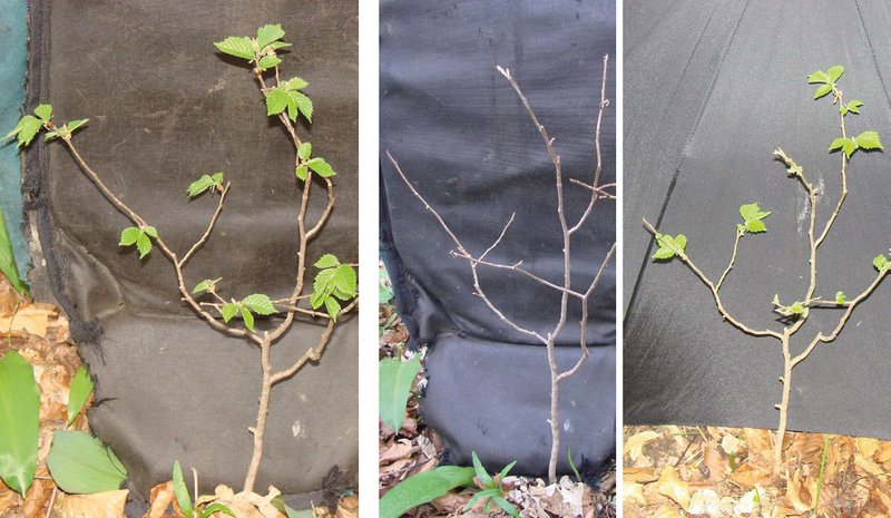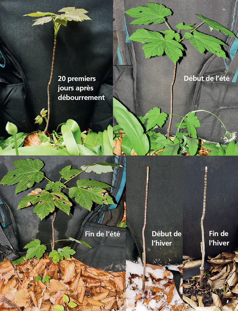 Les plants ont été suivis pendant 3,1 ans en moyenne. Nous les avons observés et photographiés plusieurs fois par an. En comparant les photos (fig. 3 et 4), nous avons pu déterminer l’essence et dater l’abroutissement. Notre dispositif expérimental ne permet toutefois pas de tirer des conclusions quant aux préférences du gibier pour l’une ou l’autre essence, ou sur l’abroutissement dans les sites étudiés.