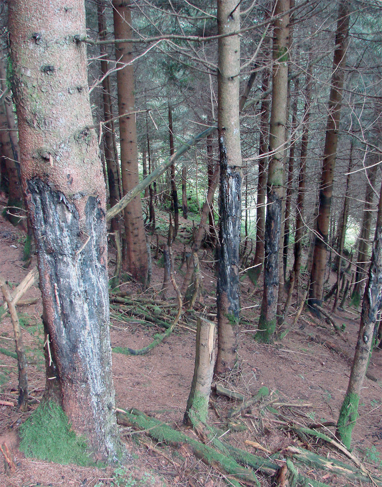 L’étendue des dommages varie d’une essence à l’autre. Chez le pin, le mélèze, le douglas ou le chêne, les blessures guérissent mieux que chez l’épicéa et entraînent donc mieux de pertes de qualité. De même, les conditions météorologiques lors de l’écorçage peuvent être plus ou moins favorables à la cicatrisation et ainsi ralentir ou endiguer l’expansion d’une pourriture dans le tronc.