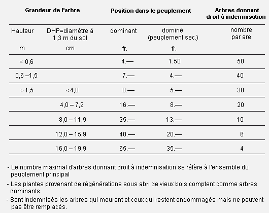 Les gardes-faune et les forestiers de triage peuvent s’aider du tableau ci-dessous pour estimer les dommages à la végétation forestière et garantit au propriétaire la transparence de l’estimation (fig. 4). Ce tableau permet de calculer indifféremment les dommages d’abroutissement, de frayure et d’écorçage.