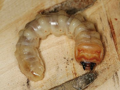 Fig. 4. La larve du capricorne asiatique des agrumes présente un motif typique sur le pronotum. Photo: Beat Wermelinger (WSL)