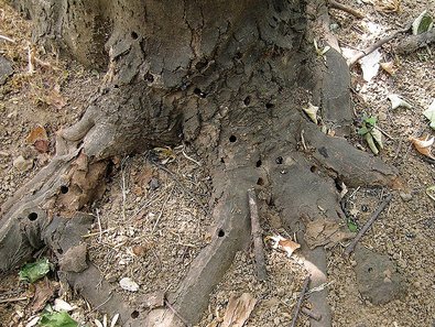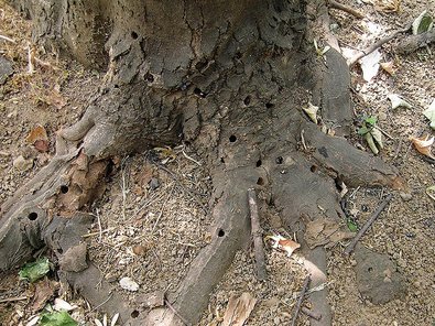Il importe de ne pas éliminer, par excès de prudence, chaque arbre présentant des traces de forage ou des trous. De nombreuses espèces de coléoptères et d’autres insectes arboricoles indigènes, parfois rares et menacés, sont tributaires de vieux arbres affaiblis ou dépérissants.