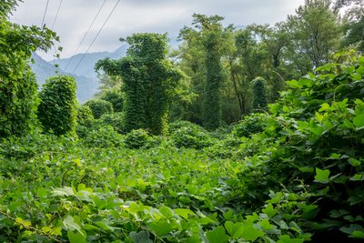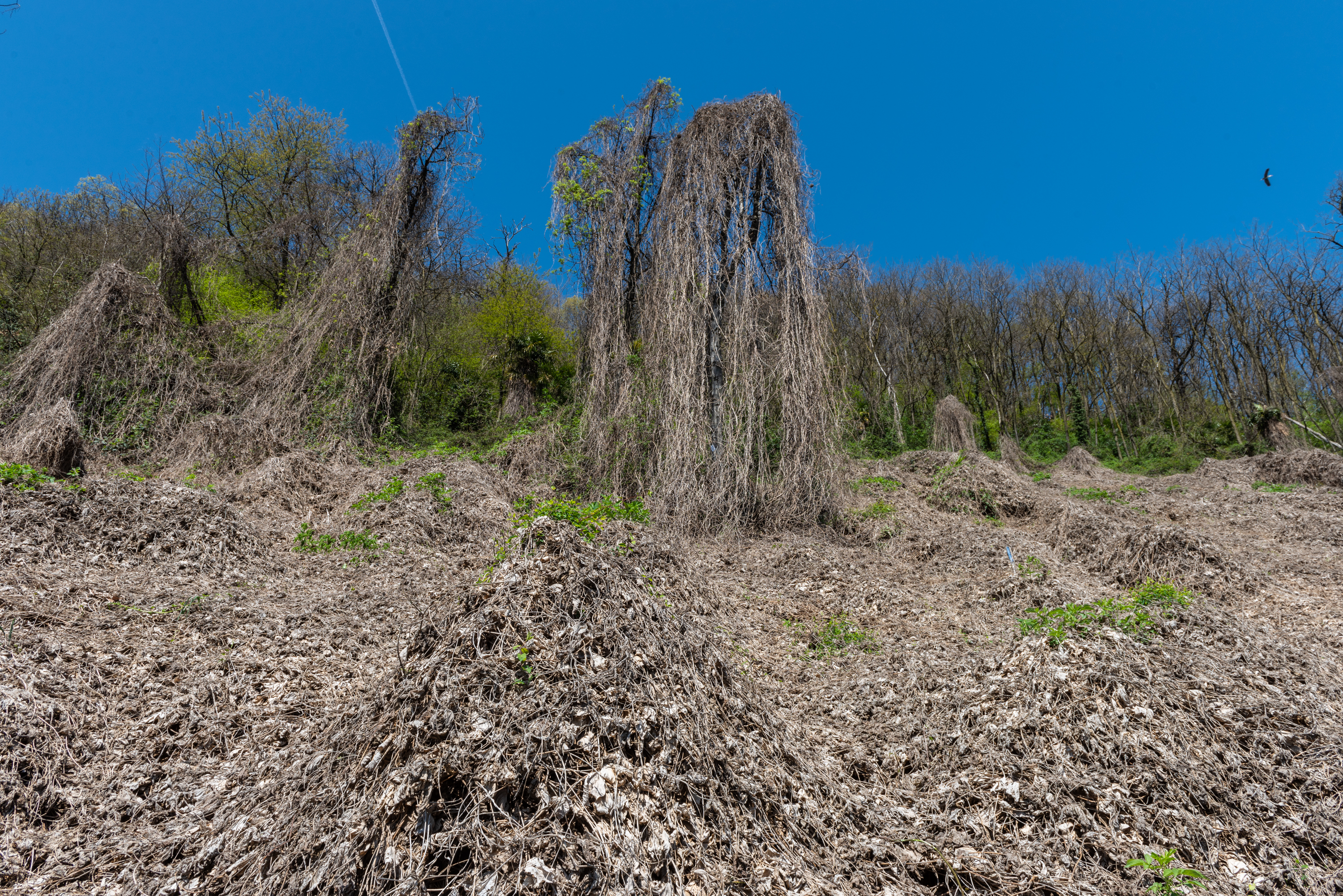 Fig. 1. Un épais tapis de lianes de kudzu réduit la biodiversité dans la couche herbacée et empêche la croissance d’autres plantes. Photo: Giorgio Moretti
