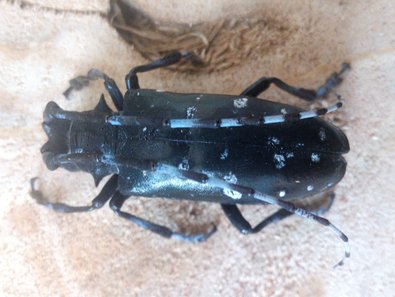 Fig. 7 - A Berikon (AG), certains capricornes étaient peu tachés et semblaient à première vue presque noirs. Photo: Doris Hölling (WSL)