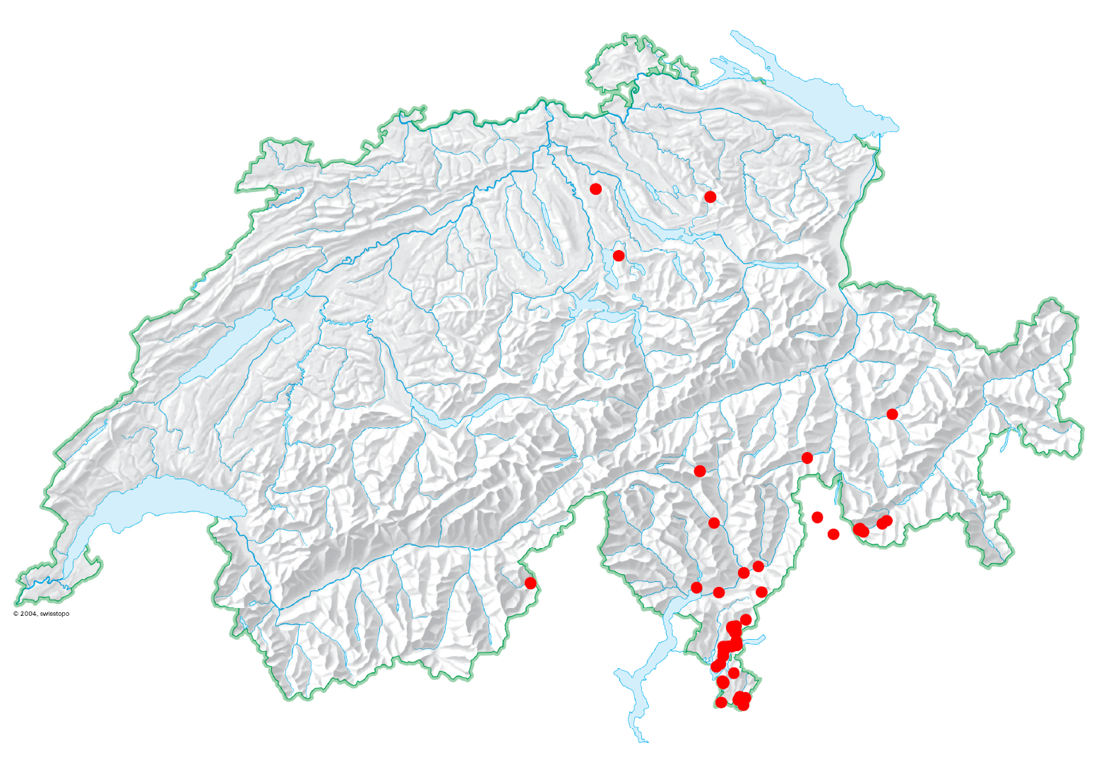 Au nord et aux altitudes plus élevées, seuls quelques arbustes isolés dans les zones d’habitations ou à proximité de celles-ci, étaient touchés. Dans le sud de la Suisse, de nombreux noisetiers étaient également infestés en dehors des zones résidentielles. À l’échelle de la Suisse, seuls des dégâts foliaires ont néanmoins été observés à ce jour et le plus souvent, seules quelques feuilles de l’arbuste étaient atteintes. Lors de découvertes en Autriche, une infestation du noisetier (C. colurna) a été constatée pour la première fois. À l’image du noisetier commun, C. colurna est largement répandu en Eurasie et est de plus en plus planté le long d’allées dans nos contrées. Avec cette espèce comme arbre hôte supplémentaire, l’oïdium asiatique du noisetier pourrait continuer de se propager.