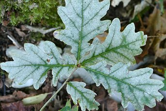 Fig. 1 - Feuilles infestées par Erysiphe corylacearum. Photos: Ludwig Beenken (WSL)