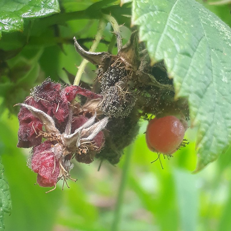 Ces fruits sont alors non seulement impropres à la consommation pour les humains, mais aussi généralement moins attrayants pour les vertébrés, en particulier pour les oiseaux. On estime que le principal impact des insectes frugivores tels que D. suzukii sur une plante est indirect, à savoir la réduction de la propagation des graines (Sallabanks & Courtney 1992). En réponse à la ponte, nous avons observé des symptômes de décomposition (indentation, suintement, déformation et décoloration). La décomposition provoquée et accélérée par l'infestation modifie non seulement l'aspect visuel, mais aussi l'odeur et le goût des fruits. Les fruits infestés peuvent rapidement perdre de leur attrait, en particulier pour les oiseaux qui réagissent fortement aux stimuli visuels. Nous avons souvent observé des fruits décomposés encore présents sur les rameaux (« momies »), ce qui indique que les oiseaux évitent les fruits infestés (fig. 6).