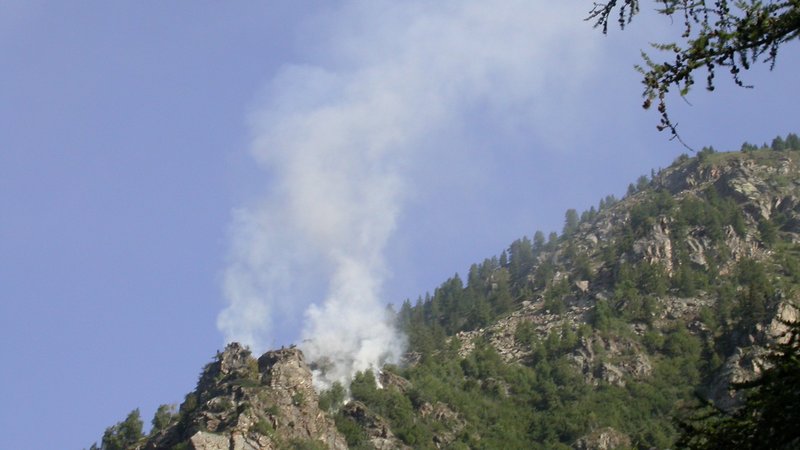 Figure 1 - Colonne de fumée caractéristique d’un incendie de foudre en haute montagne. Photo: G. Cesti, vallée d’Aoste