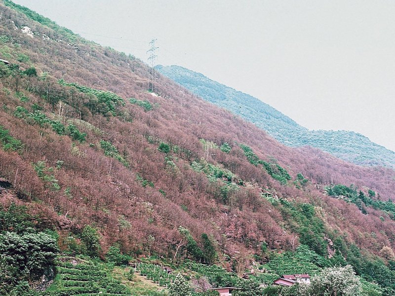 Fig. 3. Défoliation à grande échelle dans une châtaigneraie du Tessin. Photo: Protection de la forêt suisse (WSL)