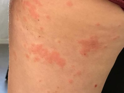 Fig. 9. Réactions cutanées allergiques provoquées par les poils urticants de la chenille processionnaire du chêne.