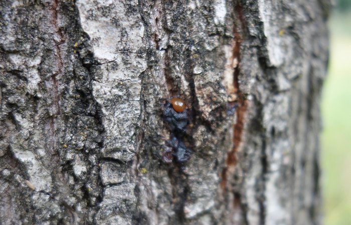 Le «dépérissement aigu» des chênes est une pathologie complexe. Des facteurs divers, gel, épisodes de sécheresse, station ou âge des arbres interagissent avec des organismes nuisibles et déclenchent la maladie. Les bactéries mentionnées jouent un rôle important, tout comme l’agrile du chêne. Des lésions accompagnées d’un suintement sur le tronc et dans la couronne (fig. 1 et 2) sont les premiers symptômes d’un dépérissement aigu du chêne.