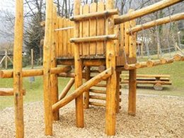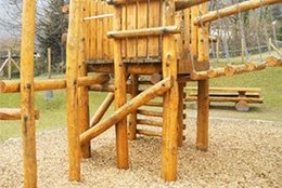 Fig. 4. Une entreprise tessinoise – Federlegno Ticino – s’est consacrée à la valorisation du bois de châtaignier. Il en résulte de superbes places de jeux en bois issu des taillis de châtaignier. Photo: Orlando Jäger
