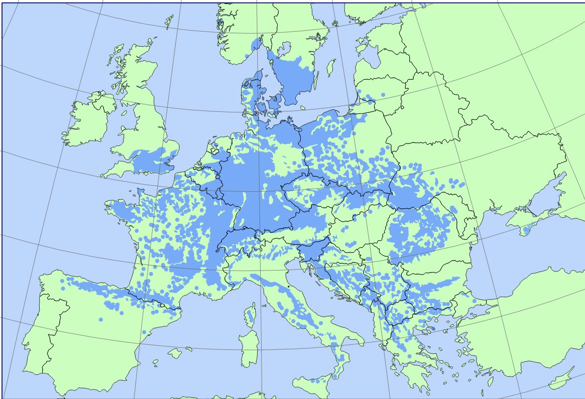Sa limite supérieure va du niveau de la mer dans le sud de la Scandinavie jusqu’à 2250 m d’altitude en Sicile. Son centre de gravité en altitude se trouve entre 400 et 1400 m d’altitude aux étages collinaire et montagnard.