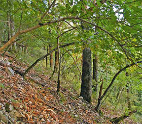 Fig. 1. Peuplement de chêne pubescent dans le Wangental, près d’Osterfingen (SH). Les peuplements de chêne pubescent de cette étendue sont très rares au nord des Alpes.
