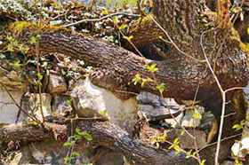 Fig. 3. Les racines du chêne pubescent se fixent à tout ce qui peut servir de support.