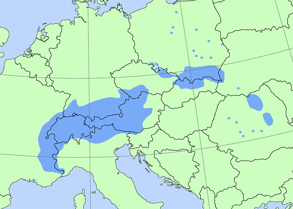 Des mélèzes poussaient déjà il y a 60 millions d’années sur terre. Des trouvailles fossiles prouvent d’ailleurs qu’ils se sont répandus de Sibérie vers l’Europe il y a environ un million d’années. L’aire de répartition naturelle actuelle du mélèze d’Europe est l’espace alpin, les Sudètes, les Carpates/Tatra, ainsi que le sud-est de la Pologne (Fig. 2).