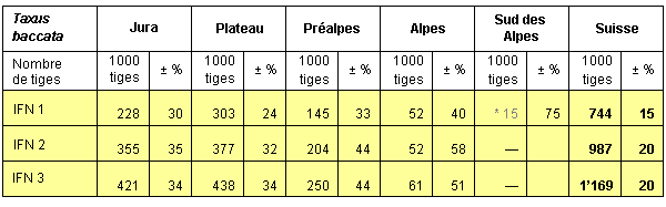 L’IFN n’a certes pas pour vocation de relever à petite échelle des essences relativement rares comme l’if. Sur l’ensemble de la Suisse, des données quantitatives telles que le nombre de tiges et l’évolution de ce nombre dans le temps sont significativement pertinents et d’une qualité que des questionnaires ne sauraient égaler.