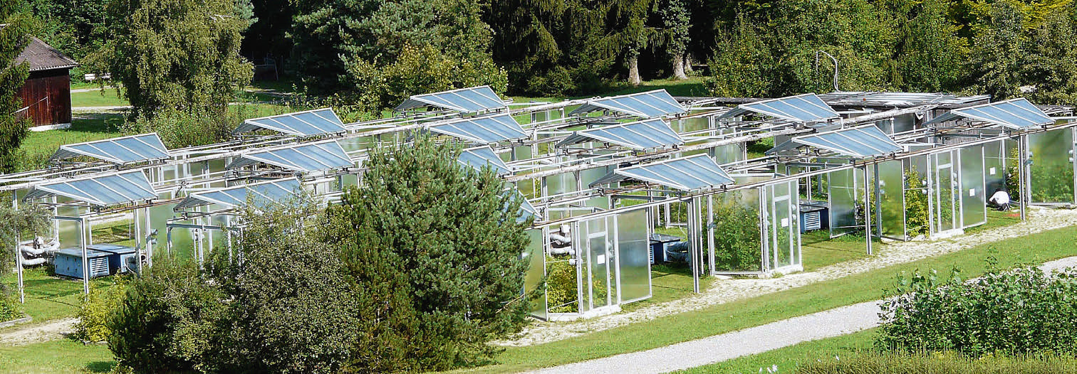 L’Institut fédéral de recherches WSL a analysé entre 2006 et 2012 le comportement de jeunes chênes sous différentes conditions climatiques. Le but de cette expérimentation de grande envergure fut d’étudier les effets de la sécheresse et d’une augmentation de la température de l’air sur le microclimat, le sol et les arbres. 770 jeunes chênes furent observés et mesurés en chambre d’écosystème modélisé pendant trois ans.