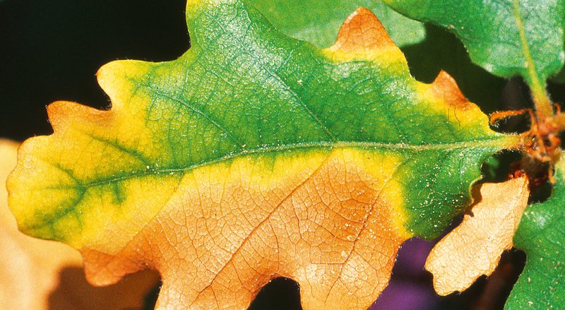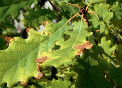 Fig. 1 - Feuille de chêne pubescent ayant souffert de la sécheresse.