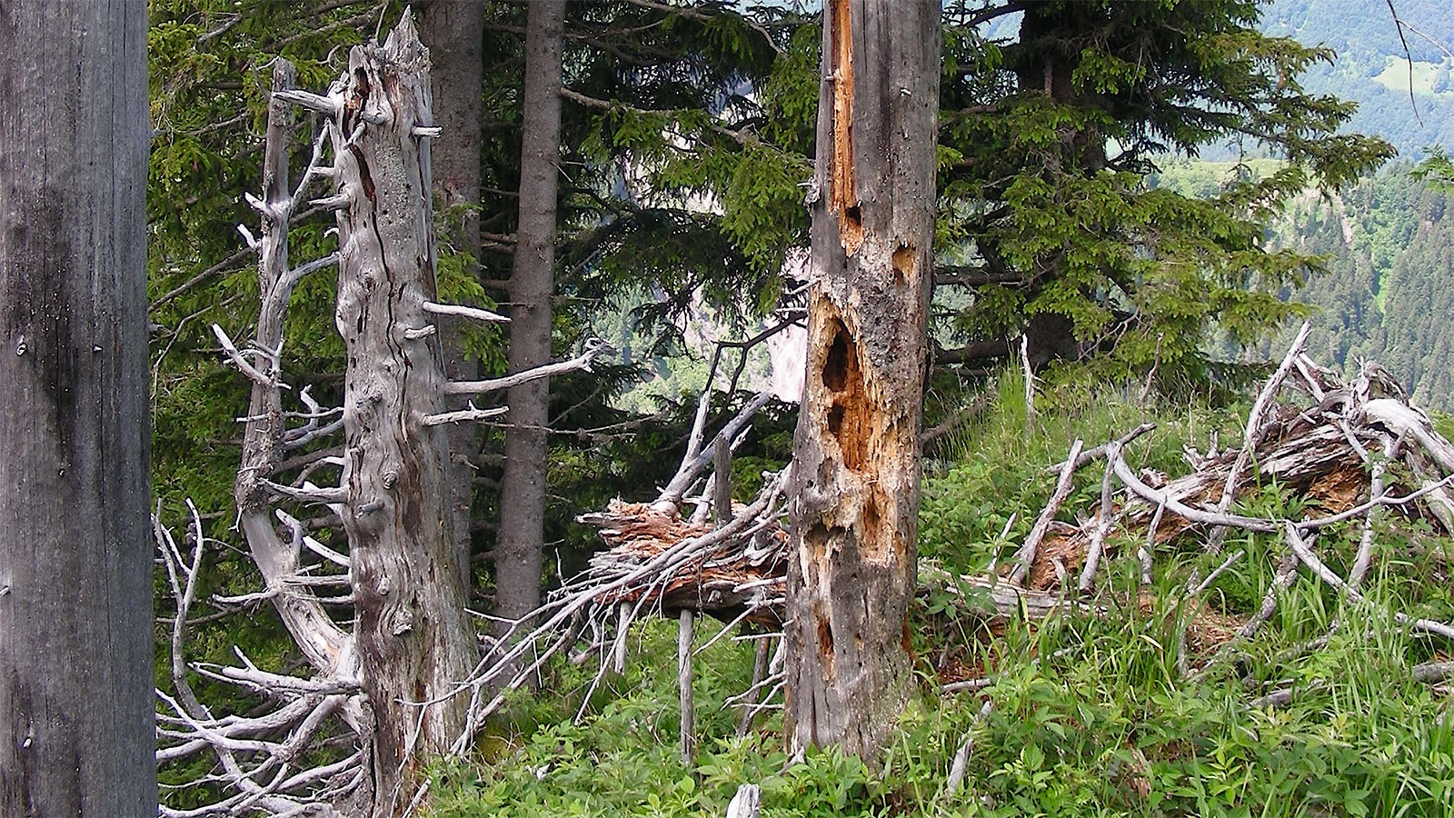 Il est peu probable que la quantité de bois mort dans une forêt laissée à elle-même puisse compenser la perte de volume de bois vifs résultant de la formation de trouées. Les forêts naturelles matures sont même souvent des forêts assez ouvertes. La grande faune sauvage peut contribuer au maintien de telles clairières ouvertes. Il est donc trompeur de considérer la densification initiale de la forêt par la non-exploitation comme un gain durable de carbone. Les forêts anciennes et plutôt ouvertes sont en outre plus sensibles aux chablis et résistent moins bien aux avalanches.Il est indéniable que les réserves naturelles, mais aussi les réserves forestières spéciales, ont une grande valeur pour la biodiversité. De nombreuses espèces sont tributaires du vieux bois et du bois mort ou des forêts clairsemées. Mais les forêts non exploitées n'ont probablement pas de valeur supplémentaire de stockage pour le carbone. Parallèlement, la substitution durable et illimitée dans le temps des combustibles fossiles par une exploitation du bois fait complètement défaut.