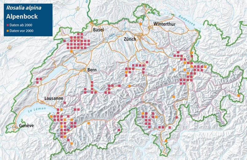 La Rosalie des Alpes (Rosalia alpina, fig. 1) est l‘un des coléoptères les plus beaux, les plus grands et les plus rares d‘Europe. Il vit dans des hêtraies qui ne sont ni rares ni menacées en Europe centrale.