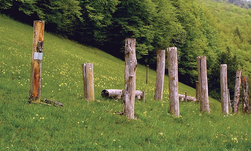 L'Institut fédéral de recherches WSL a concocté un "buffet" (fig. 4) à l’intention de Rosalia dans trois stations connues: le Val Verzasca, le Prättigau et le Jura. Un choix de troncs de hêtres morts de différentes qualités lui a été offert à chaque endroit. Les mâles qui ont défendu leur territoire avec la plus grande ardeur habitaient un tronc sur pied, long et gros. C’est là aussi que le plus grand nombre de femelles ont déposé leurs oeufs.