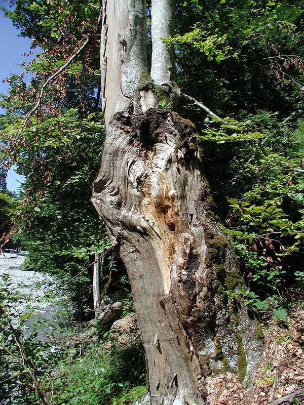 Fig. 2. Les Larves se développent dans de bois mort de hêtre exposé au soleil. Photo: Thomas Reich (WSL)